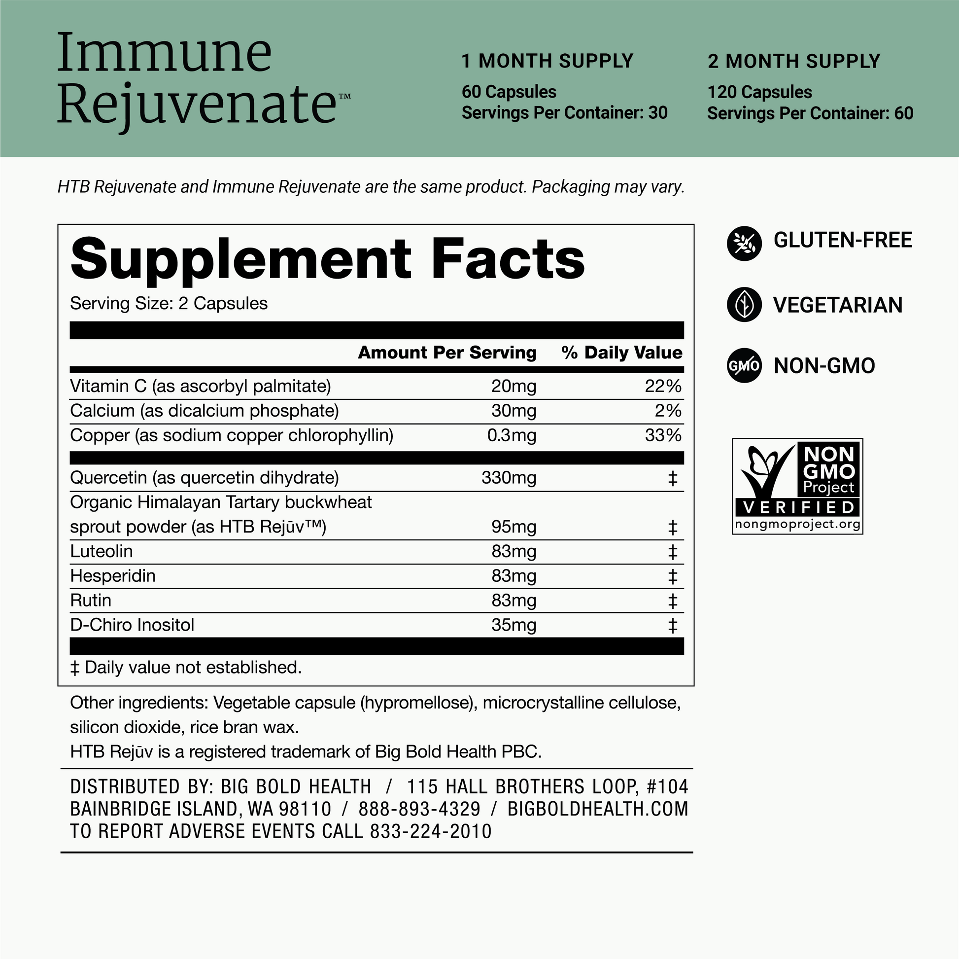 Includes 1 bottle of HTB Rejuvenate + 1 bottle of Omega-3 Rejuvenate for a 2 month supply.