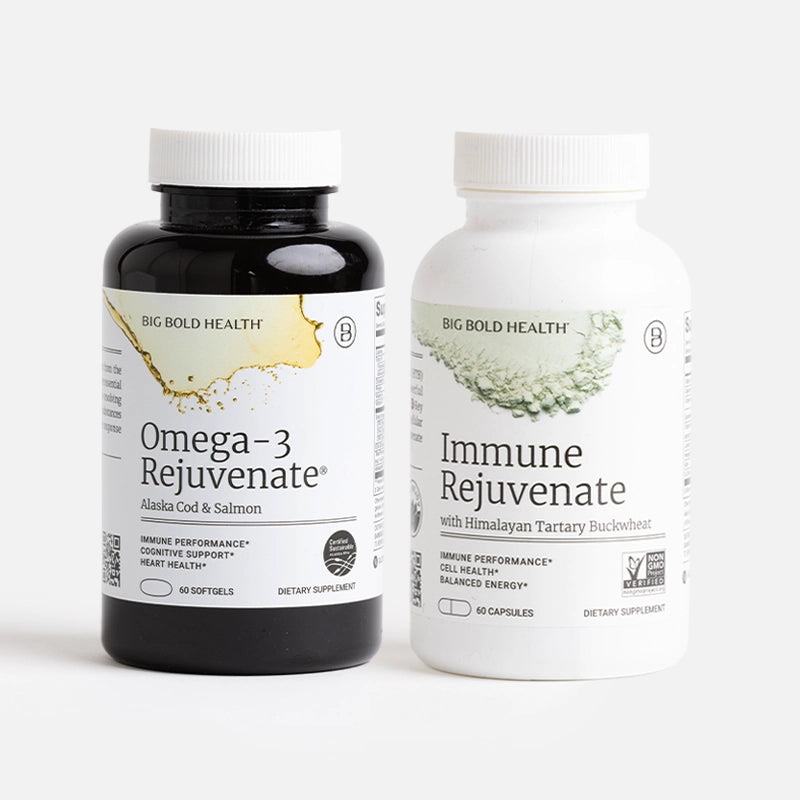 A first step toward Immuno-Rejuvenation, our new approach to whole-body health that works through your immune system. Includes our two foundational products, delivering key phytonutrients from Himalayan Tartary Buckwheat (HTB) and pro-resolving mediators (PRMs) from Alaskan fish oils.*